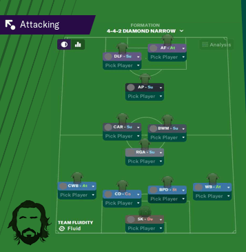 والمهاجمان في القمة وسوف تتحرك على حد سواء القنوات وتغذية من الكرات العميقة من Regista أو الجناح ظهورهم في بعض الأحيان، لذلك وتيرة جيدة والترقب سوف تكون في متناول اليدين للاستفادة من هذه، جنبا إلى جنب مع المعتاد العميق الكذب إلى الأمام والصفات المتقدمة إلى الأمام، حيث ضرب offside ل AF-A سيكون إضافة PPM لطيفة جدا.